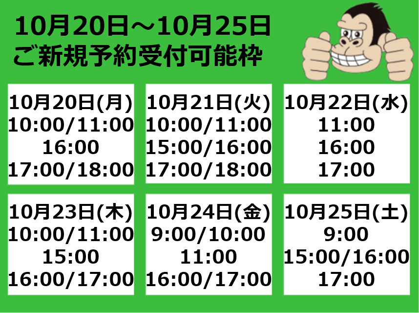 【10月20日~10月25日ご新規受付予約可能枠】