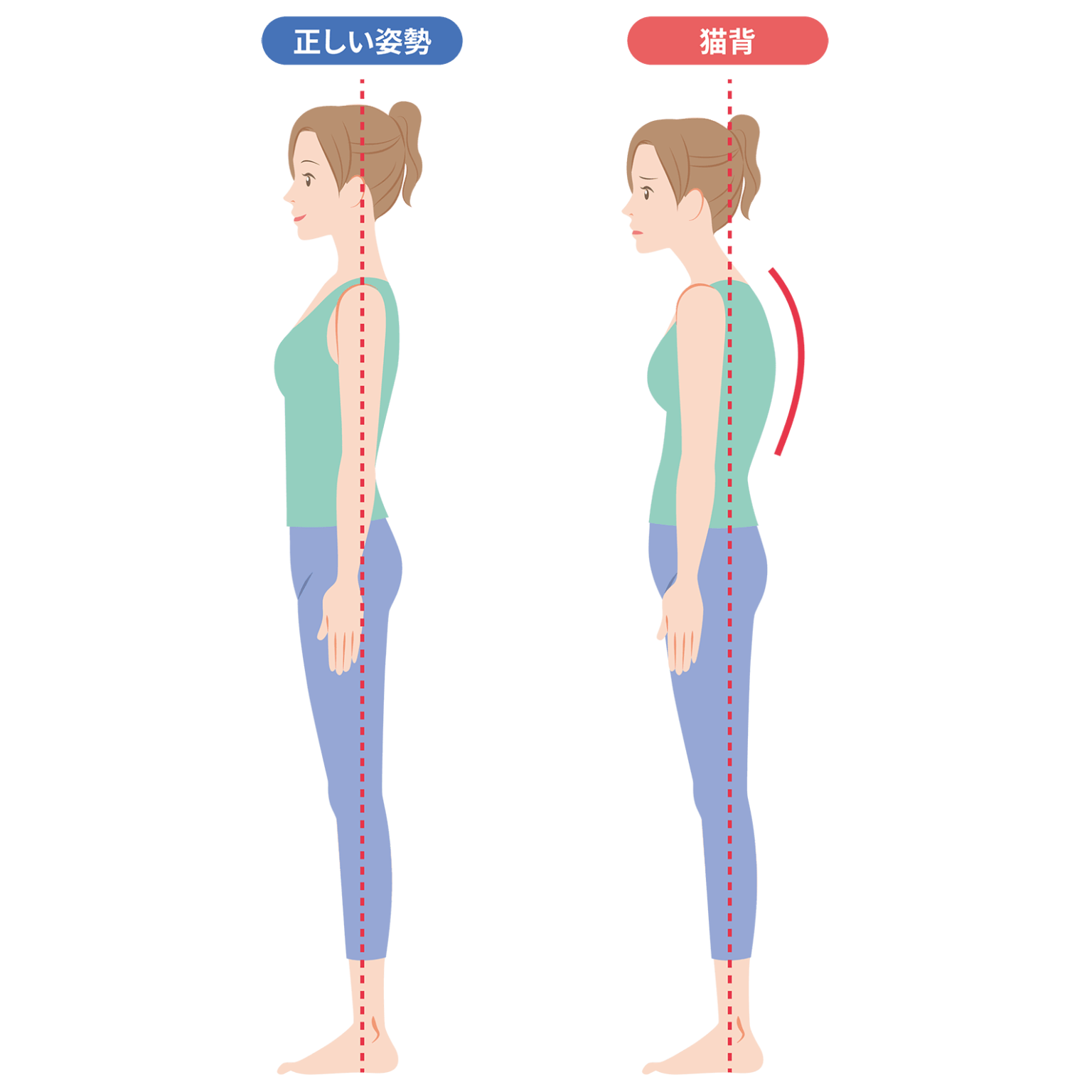 猫背の姿勢では、背中の筋肉や関節に余計な負担がかかり、常に筋肉の緊張状態が続きます。