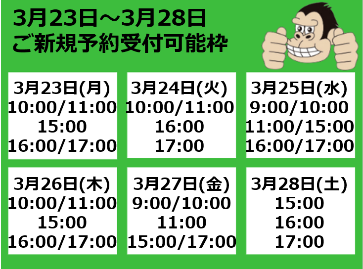 【3月23日~3月28日予約受付可能枠】